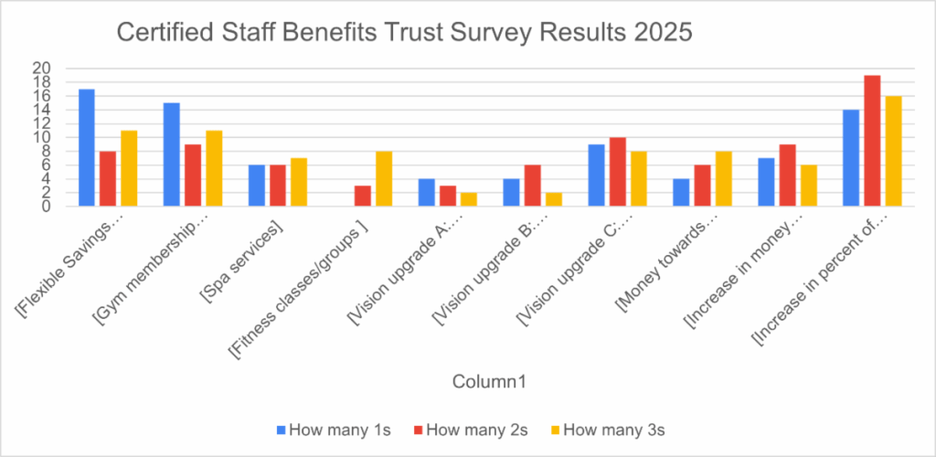 Below are the results of the survey that was sent to Certified Staff about potential changes to Benefits Trust. The Trustees will meet after the NYSUT Member Benefits conference in September to vote on potential changes to benefits based on the survey and costs.